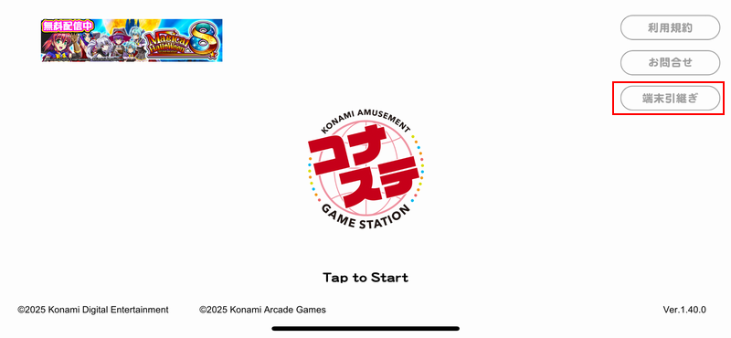 ③新しい端末にゲームをインストールし、タイトル画面右上の「端末引継ぎ」>「引継ぎコードの入力」で引継ぎコードを入力してください。